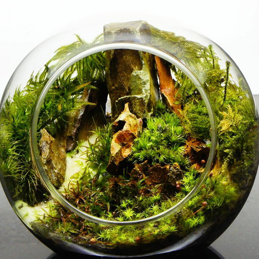 12cm ボトルテラリウム 苔テラリウム 完成品 苔盆景 テラリウム 自然の風景 気孔石