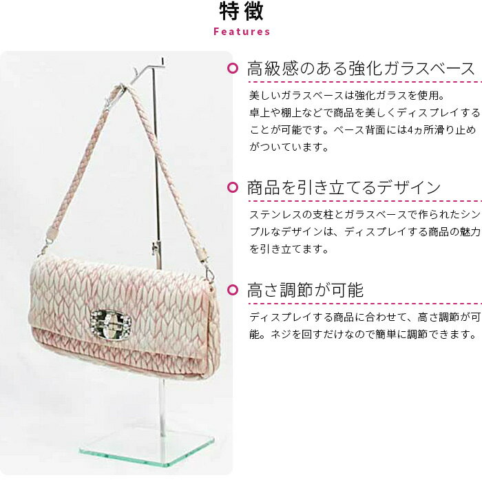 ※メーカーから弊社を経由するため ■ガラスベースシリーズ 商品ラインナップ T字スタンド バッグスタンド 傾斜スタンド ブーツスタンド 帽子スタンド