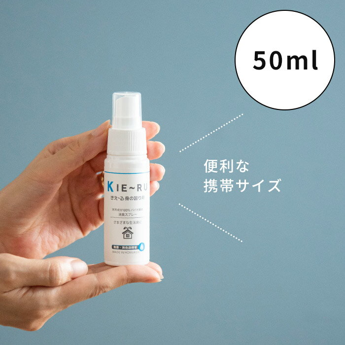 【p2】KIE〜RU 身の回り用 携帯スプレー 50ml(消臭液 消臭剤 日本製) 気になるニオイにシュッ! 消臭剤の決定版 北海道北見市で生まれた「きえ〜るUシリーズ」の消臭液。
