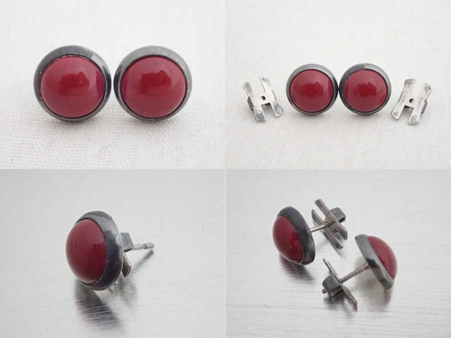 エルメス HERMES ピアス エクリプス シルバーxダークレッド 金属素材xエナメル ラウンドピアス ストーンピアス レディース 【中古】【おすすめ】 - e46315a