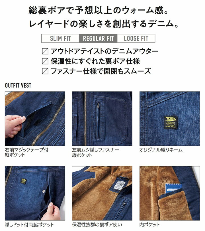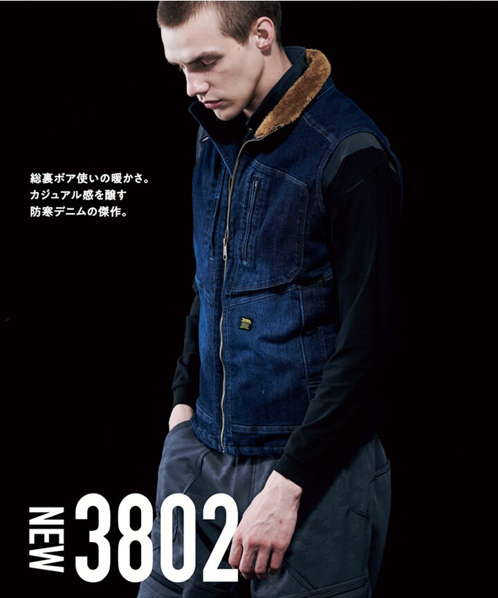 寅壱 デニム防寒ベスト 3802-602 ストレッチ 保温 総裏ボアで予想以上のウォーム感。